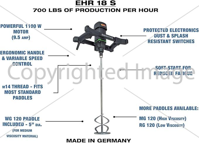 "We use the CS Unitec EHR 18 S Portable Hand-Held Electric Concrete Mixer for our artisan projects, and it never fails to deliver consistent results. It's a must-have tool for anyone working with concrete or mortar." - Jenny, Artisan
